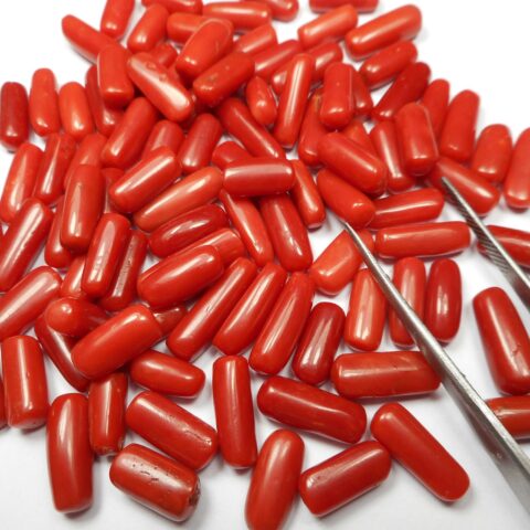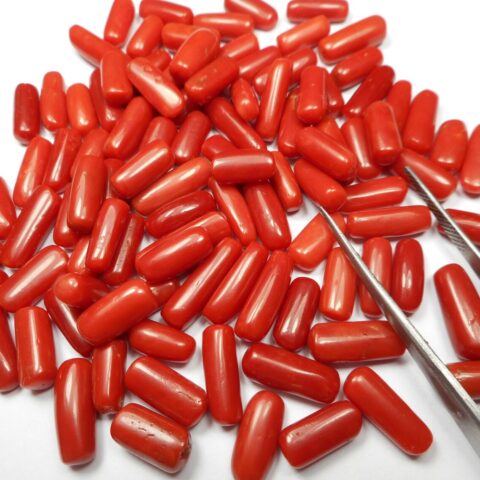Italian Coral / Natural / Capsule shape / Cabochon / 5x11x5 mm to 6x12x6 mm / wholesale price
