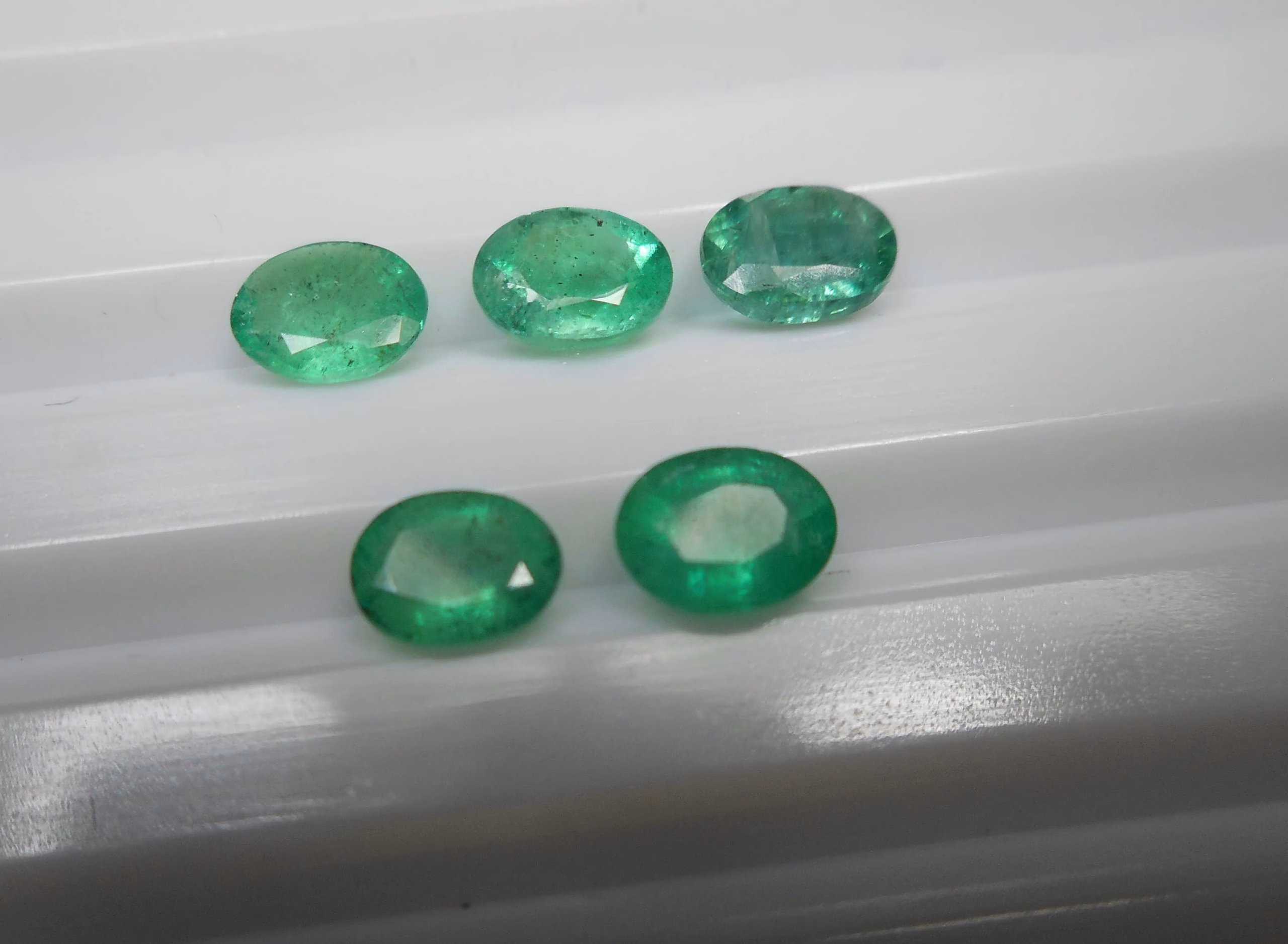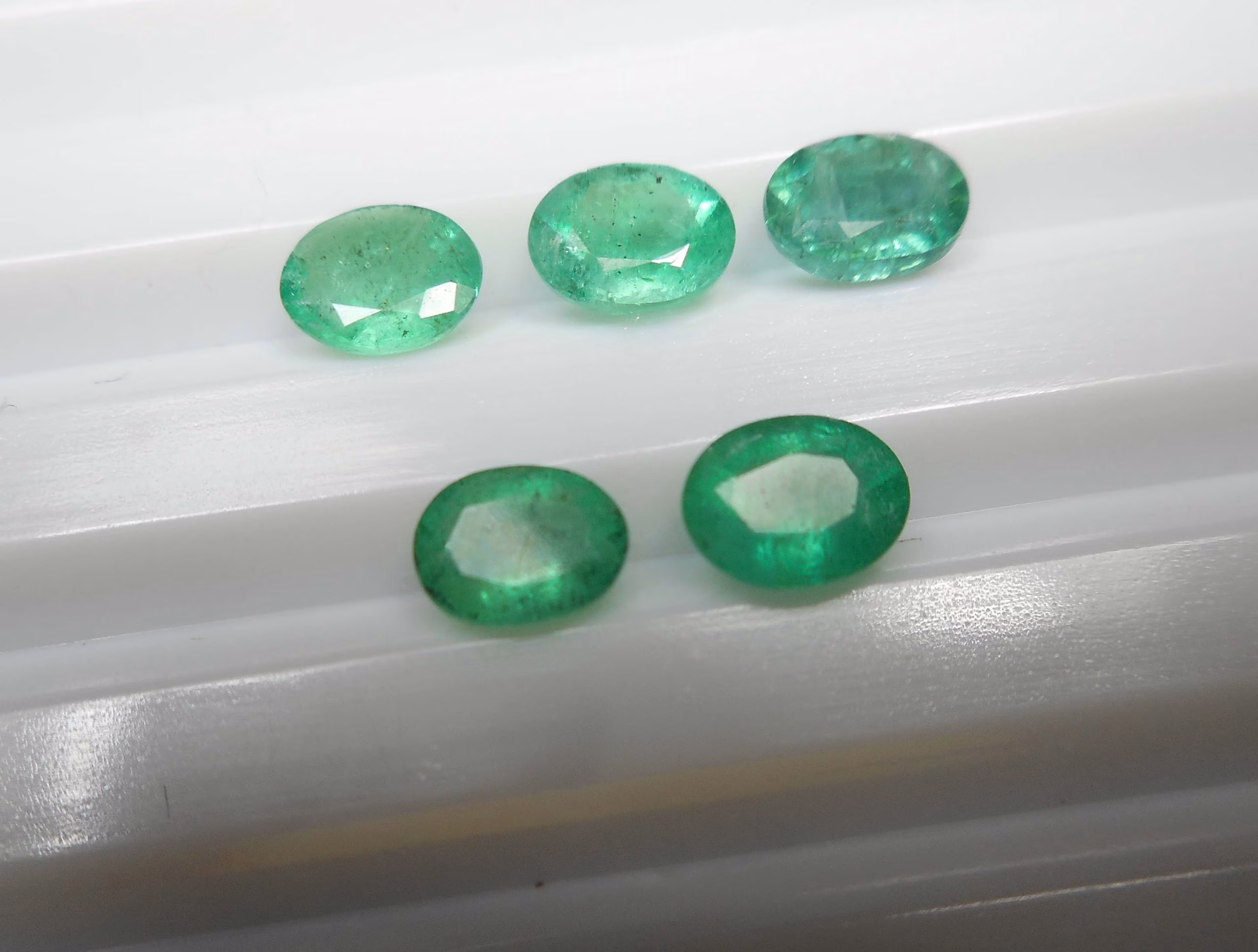 “Shop 5 pcs of 4×5 mm oval Zambian emeralds – faceted, excellent cut, good quality. Perfect for fine jewelry. Wholesale pricing available.”