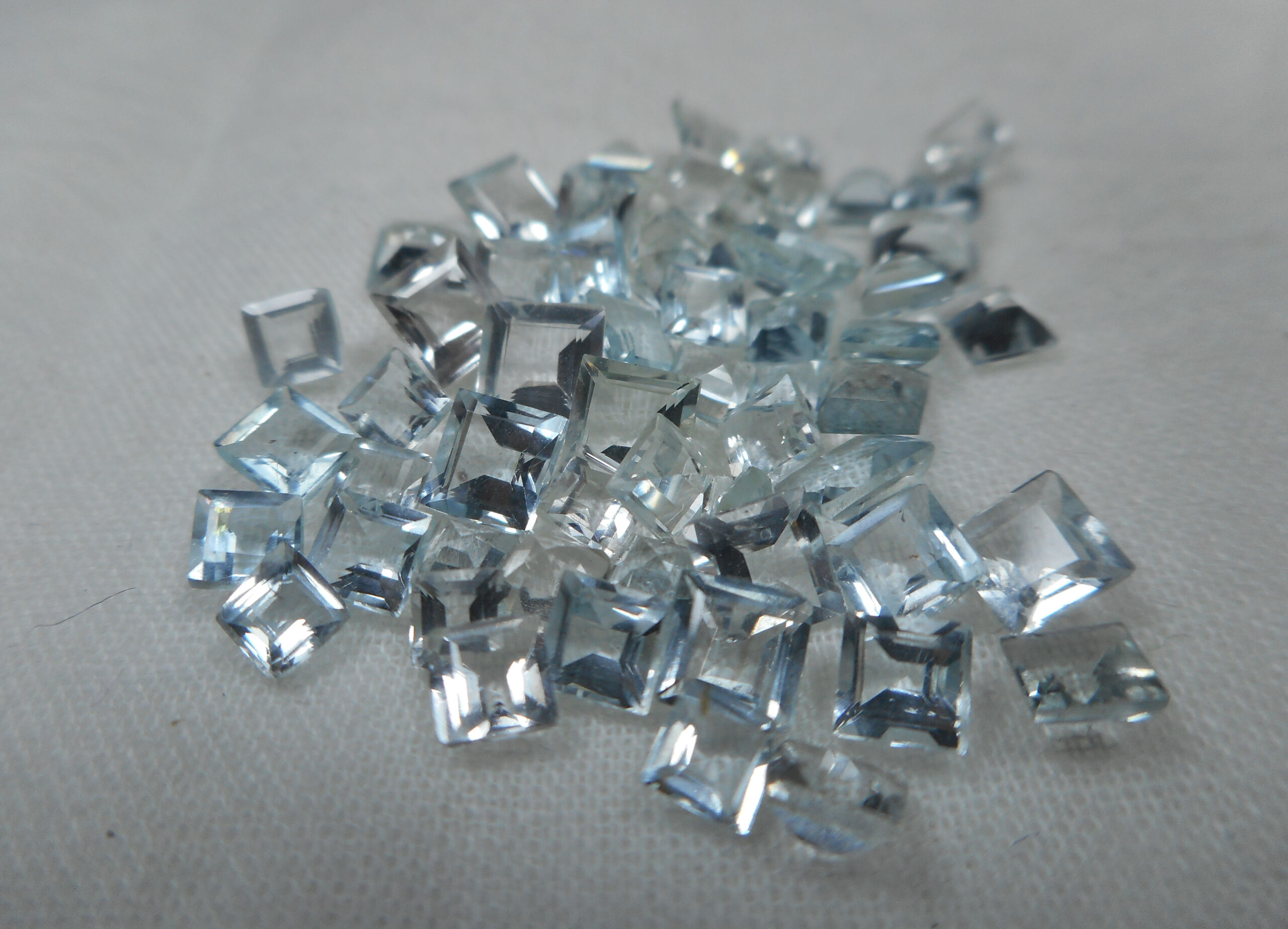 Natural Aquamarine – Square Faceted | 2 mm, 3 mm, 4 mm, 5 mm | High Quality