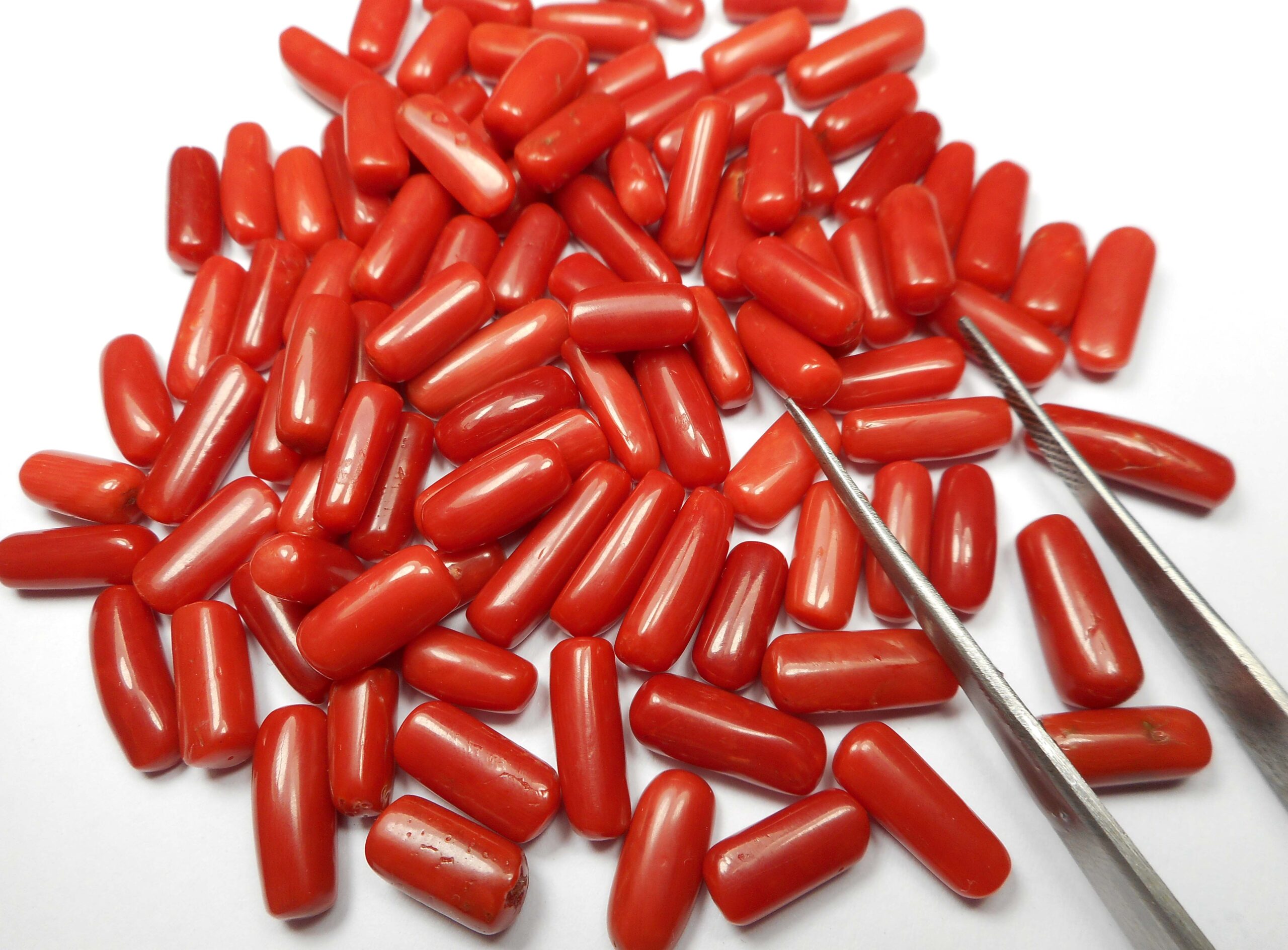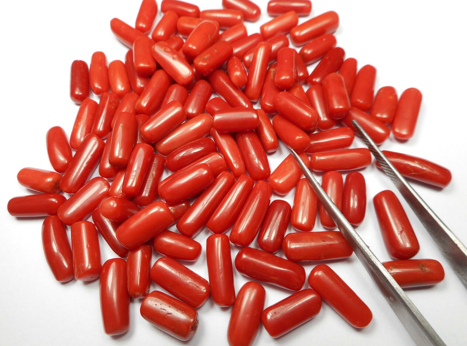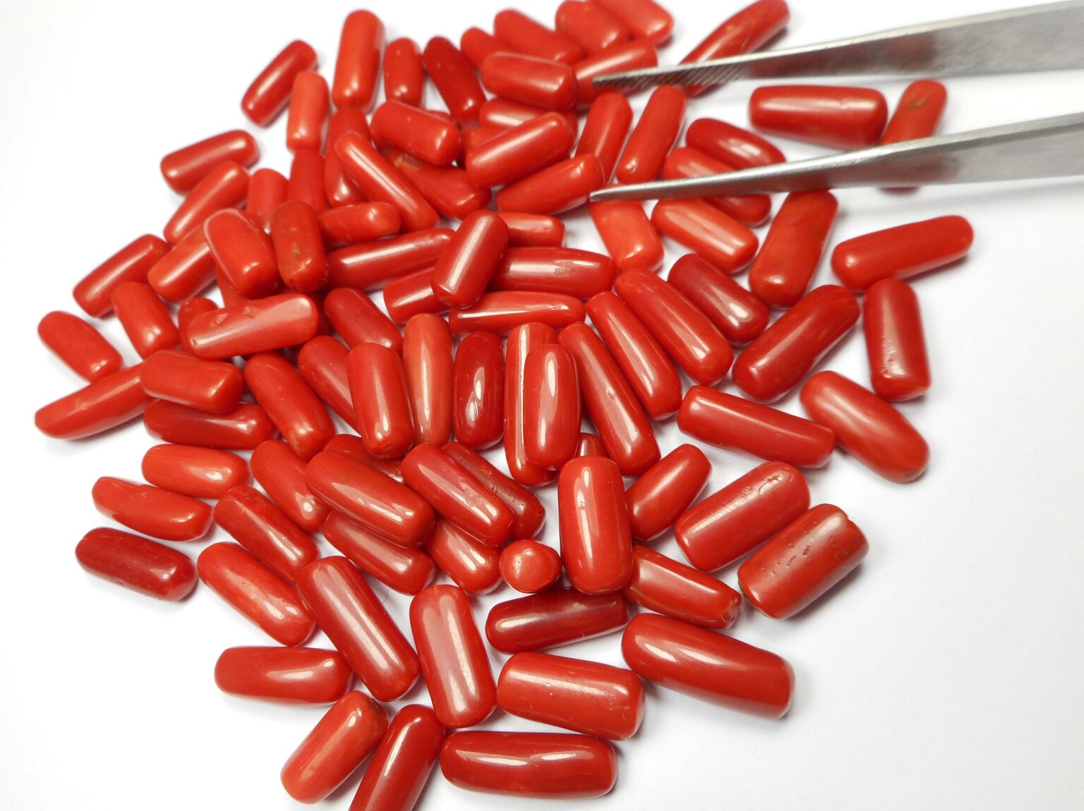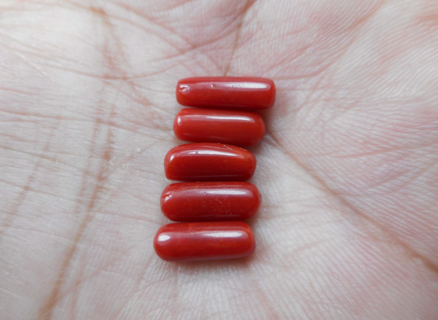 Italian Coral / Natural / Capsule shape / Cabochon / 5x11x5 mm to 6x12x6 mm / wholesale price